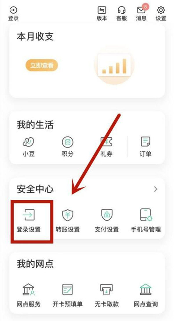 1、打开中国农业银行app,在首页面点击进入登录设置。