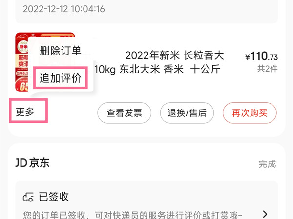 2、点击需要追加评论订单左下角的【更多】,选择【追加评价】即可。