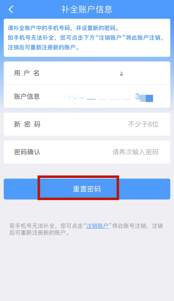 3、完成人脸核验之后,在页面中填写新的密码,点击【重置密码】即可。