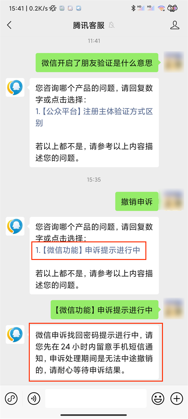 3、点击回复的蓝色字体或数字1,即可看到申诉进度以及无法中途撤销说明。
