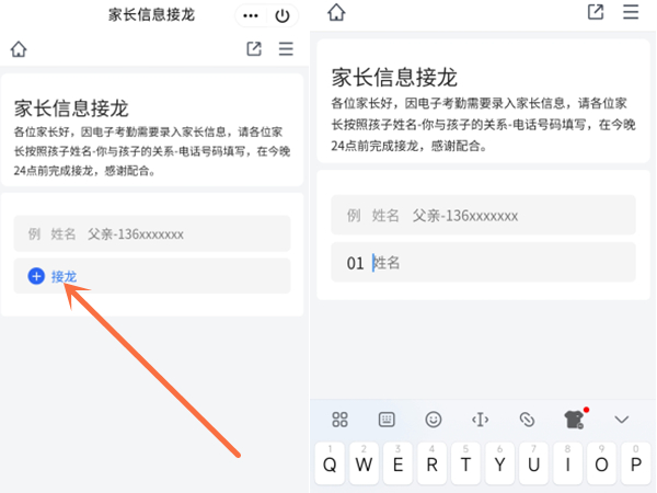 2、点击接龙,再填写内容发送即可。