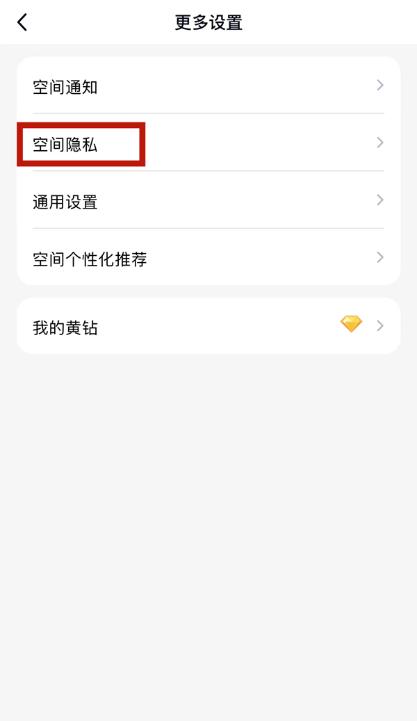 4、在更多设置界面中我们再点击【空间隐私】按钮。