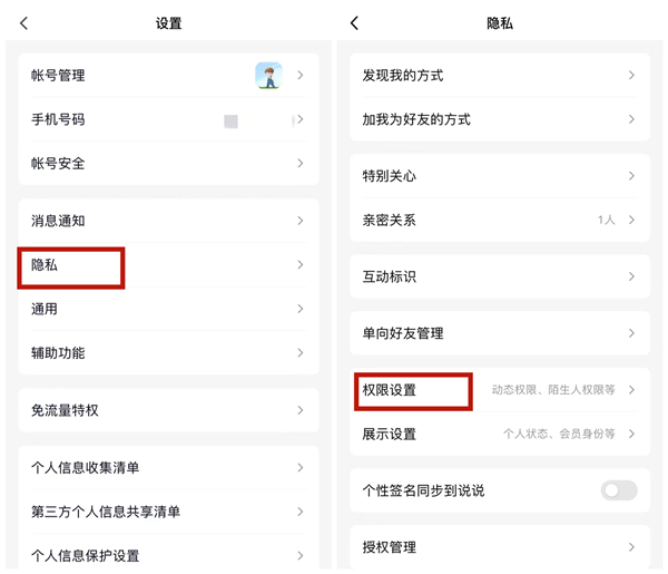 2、在设置界面中点击【隐私】,进入隐私界面点击【权限设置】。