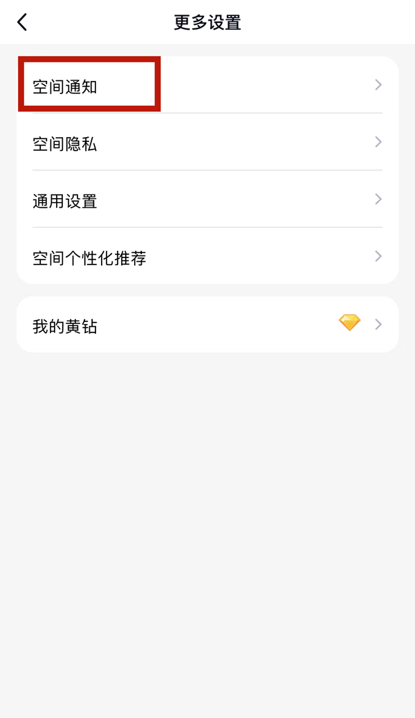 4、在更多设置界面中我们再点击【空间通知】按钮。
