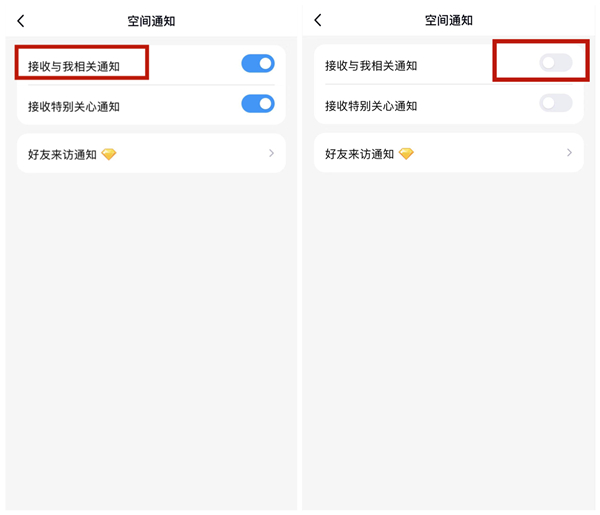 5、然后在空间通知界面,关闭【接收与我相关通知】即可,这样点赞的消息将不会提醒你。