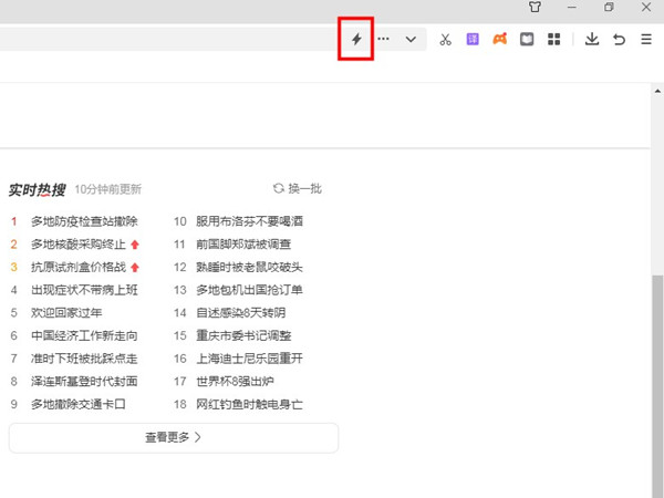 1、打开360浏览器,点击搜索网址后面的闪电图标。