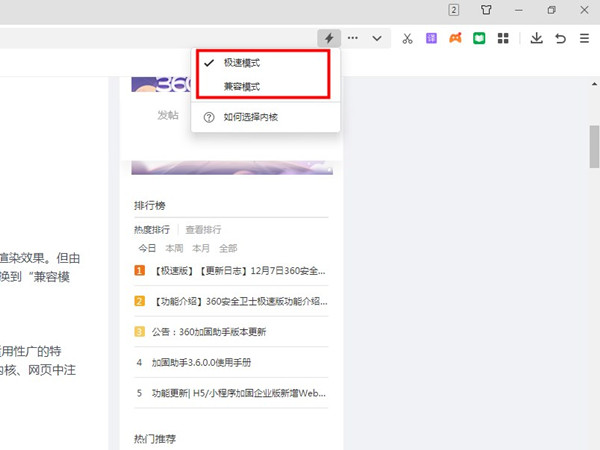 360浏览器有极速模式和兼容模式两种内核模式,极速模式对部分网银、政府、税务、办公系统等网站兼容度不高需切换兼容模式。那360的极速模式怎么切换?