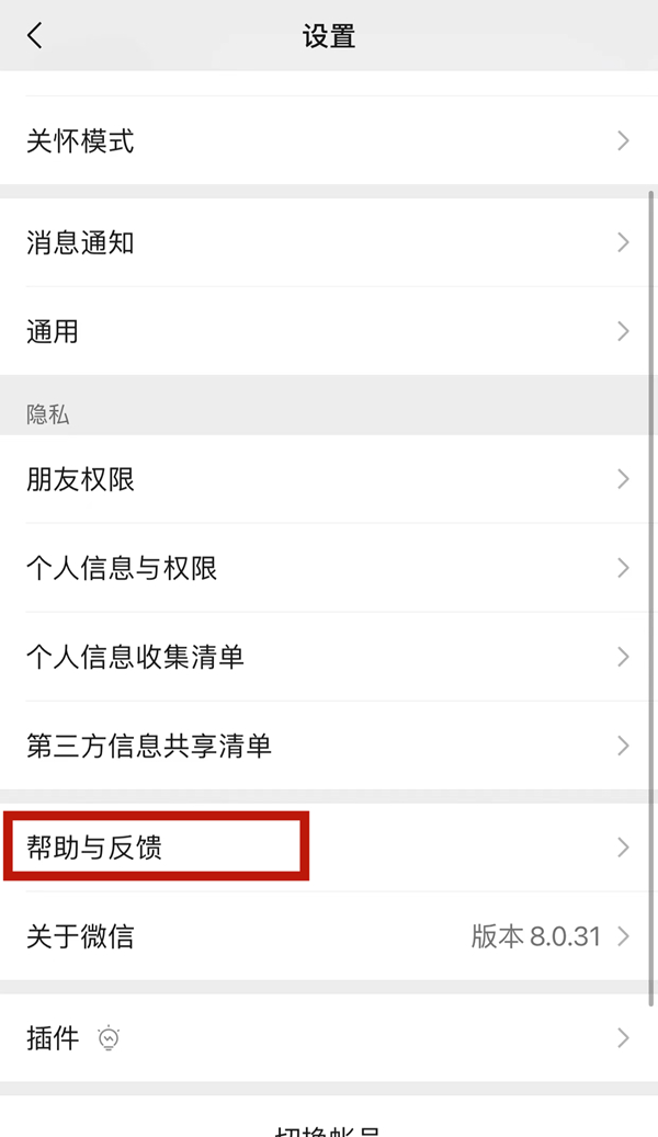 2、在设置页面,下滑找到【帮助与反馈】功能,点击进入。