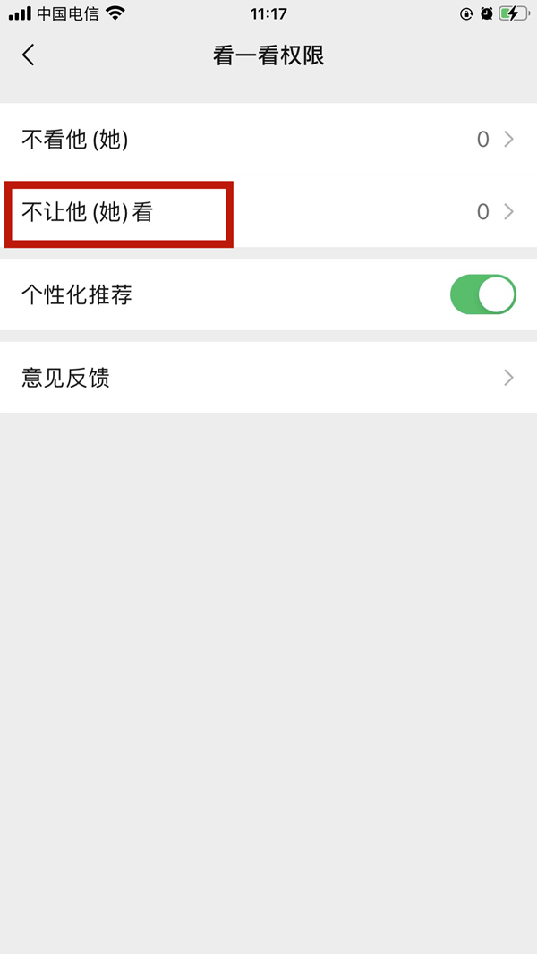 4、进入看一看权限,点击不让他(她)看。