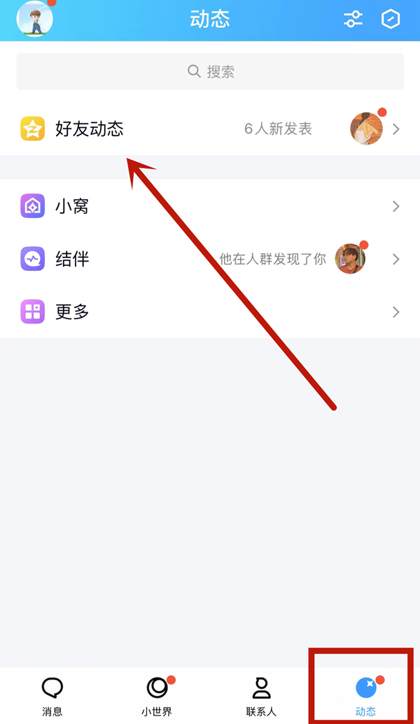 1、登录手机qq在屏幕右下角点击【动态】并打开【我的空间】。