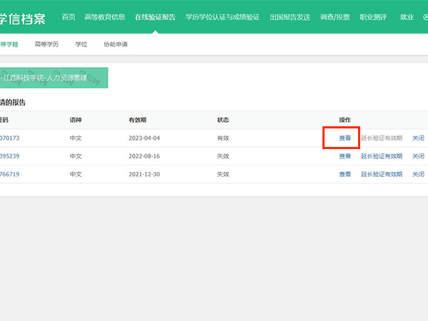 4、在申请的在线验证报告里,点击有效报告右侧的查看即可看到验证报告。