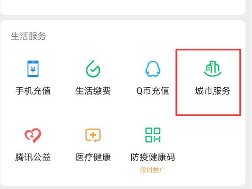 2、进入【服务】页面,选择【城市服务】。