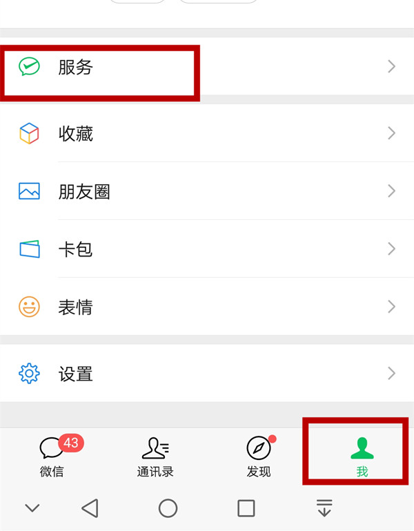 1、进入微信【我】,点击【服务】。
