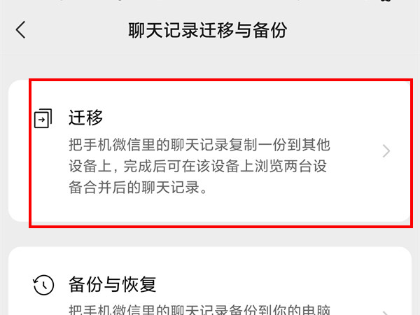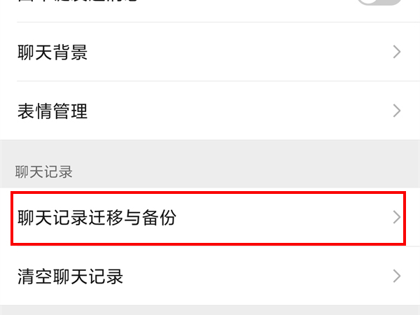 3、点击聊天记录迁移与备份。