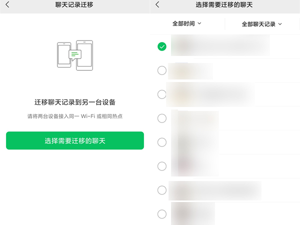 6、点击选择需要迁移的聊天,并选择聊天对象,点击开始。