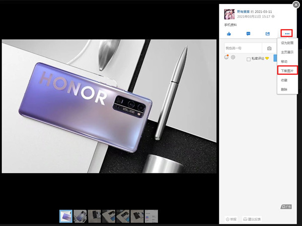 2、选择需要保存的照片,点击左边三点,选择【下载】即可。