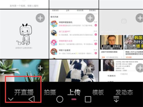 1、打开哔哩哔哩,点击下方【+】图标。