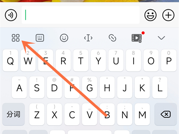 1、调出小米自带的搜狗输入法小米版键盘,点击键盘上的功能图标。