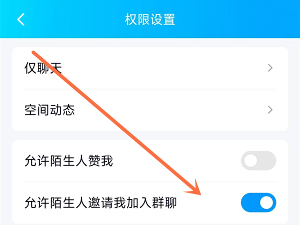 4、将允许陌生人邀请我加入群聊的开关关闭即可。