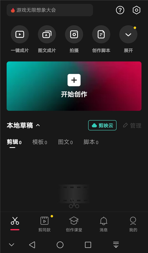 1、打开剪映APP,点击首页中的【开始创作】。