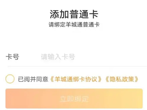 2、点击添加羊城通实体卡,输入广州羊城通卡号,点击立即绑定。