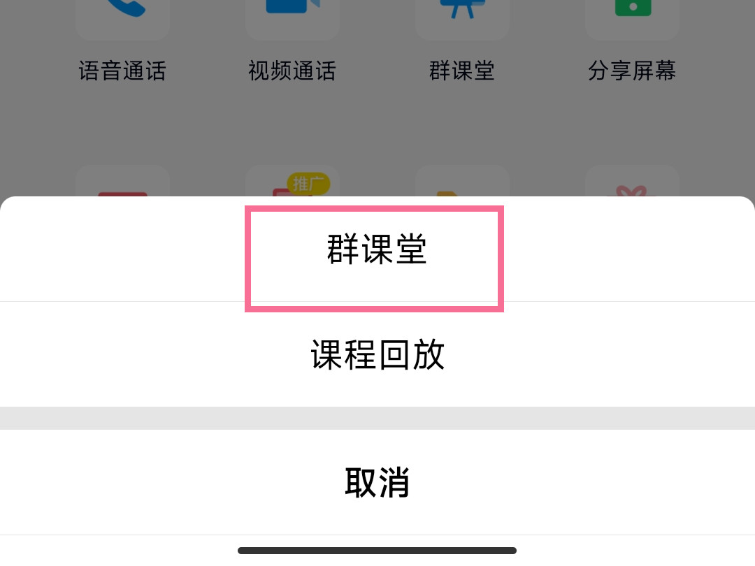 如果是需要加入别人发起的群课堂,只需要点击群消息中的发起群课堂消息框即可。