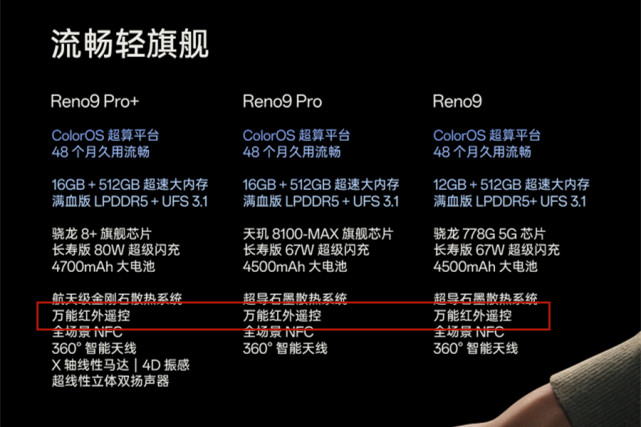 11月24日,OPPO正式发布新一代Reno9系列手机,主打的口号是“双芯人像轻旗舰”,不难看出人像摄影、轻薄设计依然是产品主打。那OPPO Reno9支持红外吗?