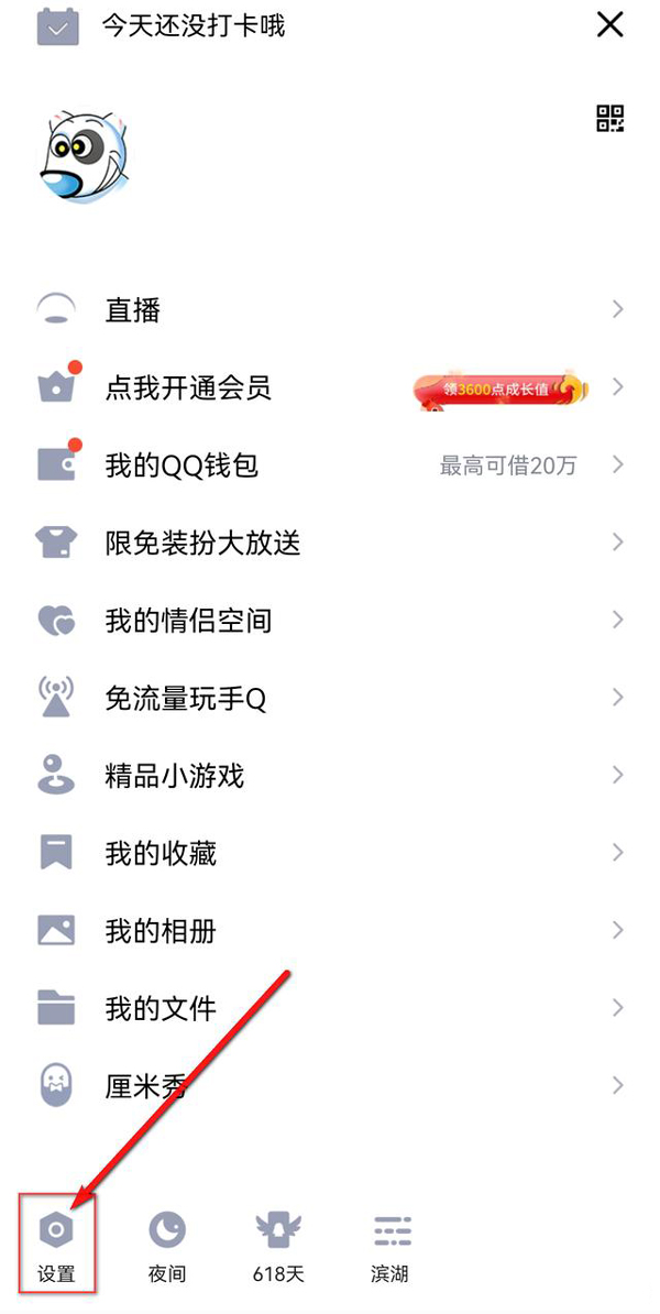 1、打开QQ,点击左上角用户头像,点击“设置”。