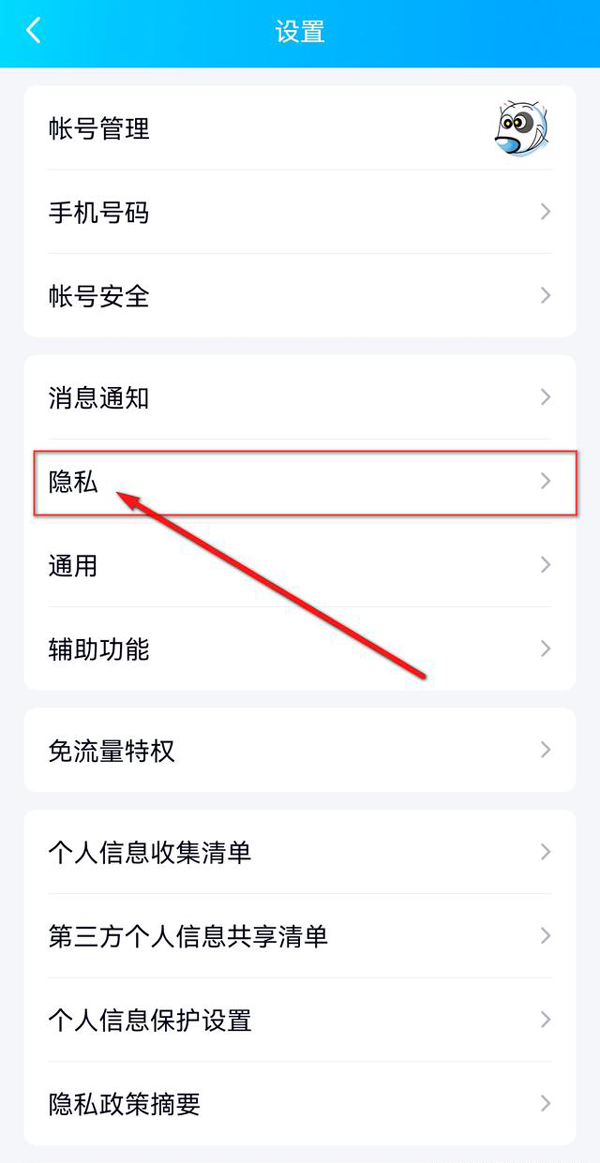 2、点击“隐私”。