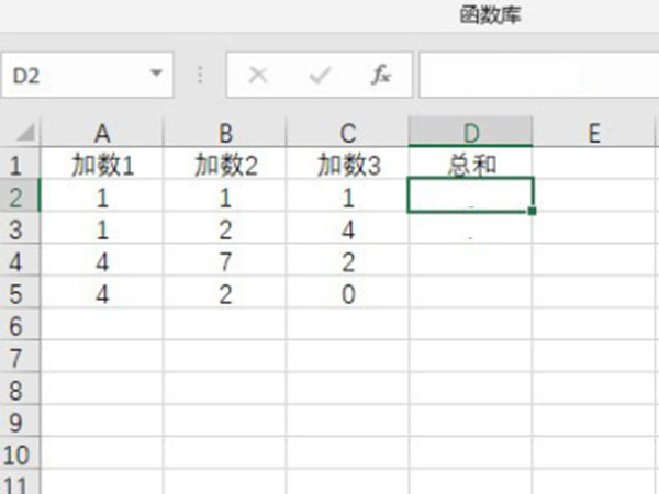 2、点击公式,找到SUM函数,然后鼠标拖动选中需要求和的那一行或一列数据,点击确定即可。