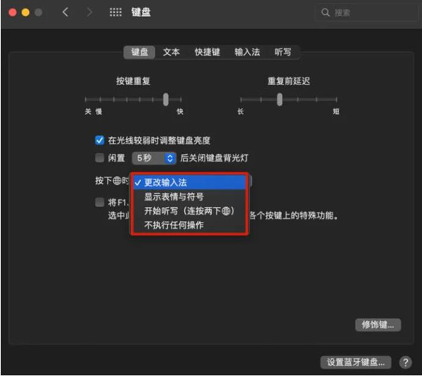 如果你的 Mac 键盘 fn 键带有地球图标,并且系统便好设置中该键的功能是「更改输入法」,则通过点按 fn 键也可以切换输入法。