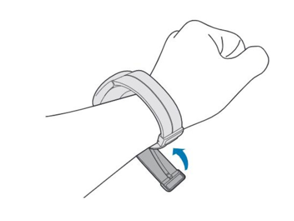 3、将 Watch 戴在手腕上,然后固定带扣。