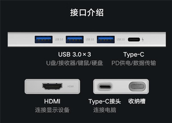 小米这款扩展坞配备了3个USB3.0接口、1个Type-C接口、1个HDMI接口,并且支持Type-C接口支持充电与数据交互,一个扩展坞完美解决接口扩展、高清投屏、充电等需求。