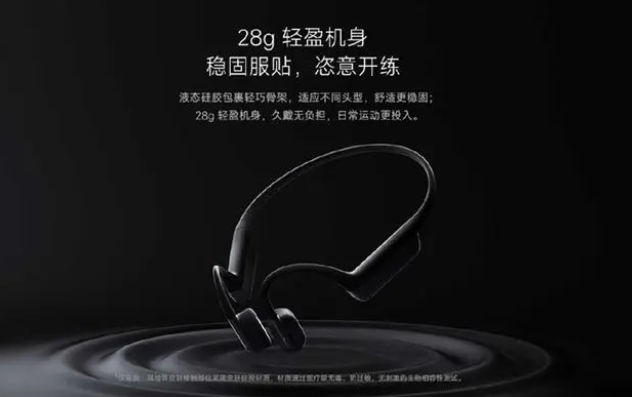 小米骨传导耳机重量多少小米骨传导耳机重量为28g,采用液态硅胶包裹轻巧骨架,适应不同头型,支持IP66的防水等级,搭配全密封无漏音孔结构。