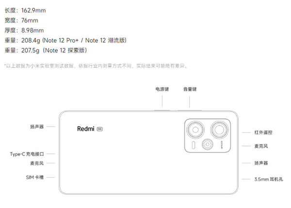 红米Note12Pro+重量?红米Note12Pro+重量为208.4g,机身尺寸为162.9mm*76mm*8.98mm,红米Note12Pro+搭载5000mAh电池,支持120W充电功率内置澎湃P1芯片。