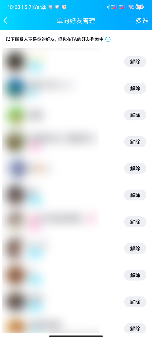 ️如果对方还没删除你,可以通过单向好友管理查看你删除的好友,具体操作步骤如下: