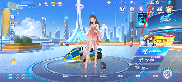 1、登录qq飞车手游,在主界面点击右上方两个小人的图标进入游戏社交。