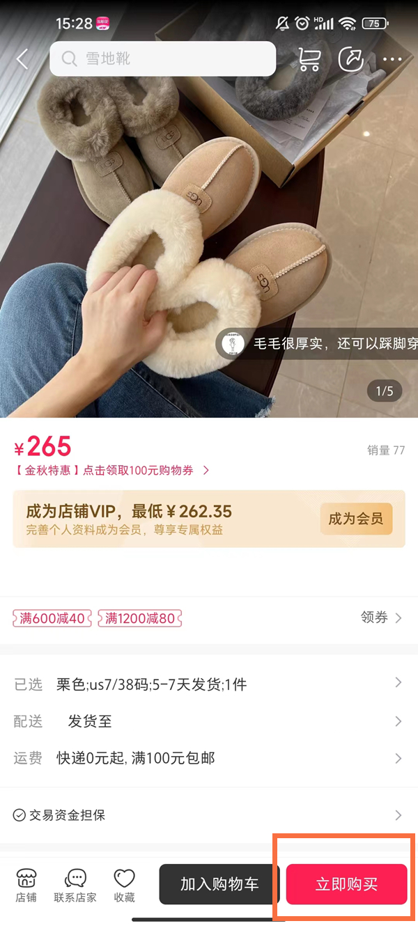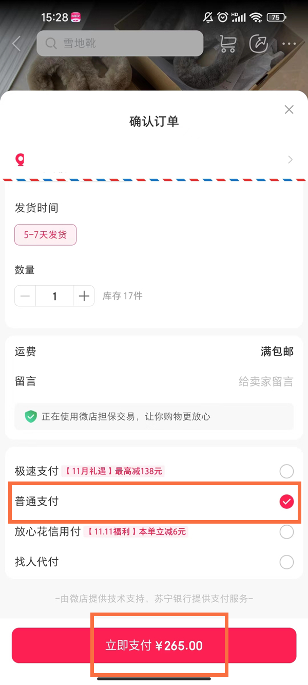 2、选择商品类型,勾选普通支付,再点击立即支付。