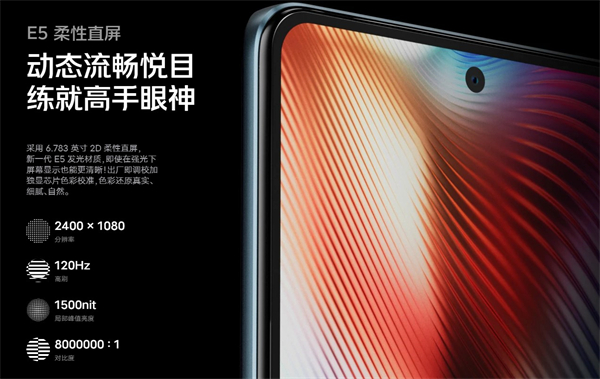 iqooneo7是什么屏幕?iqooneo7是三星E5材质的6.78英寸AMOLED柔性直屏,采用挖孔设计,支持120Hz刷新率、HDR10+、800W:1的高对比度,还支持360Hz的触控采样率和2000Hz的瞬时触控采样率。
