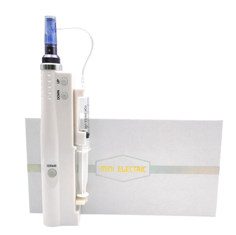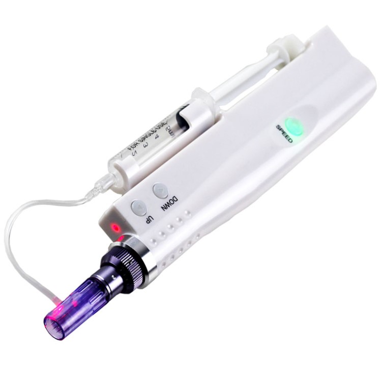 准备好以上三步之后,将需要使用的无针水光产品准备好。首先把保护盖打开,然后把装好产品的注射器放入相应位置,再盖上保护盖,调节推针器的位置。推针器与注射器的末端贴紧。这一步一定要做到位,否者在开始治疗的时候,仪器是不能正常开启的。
