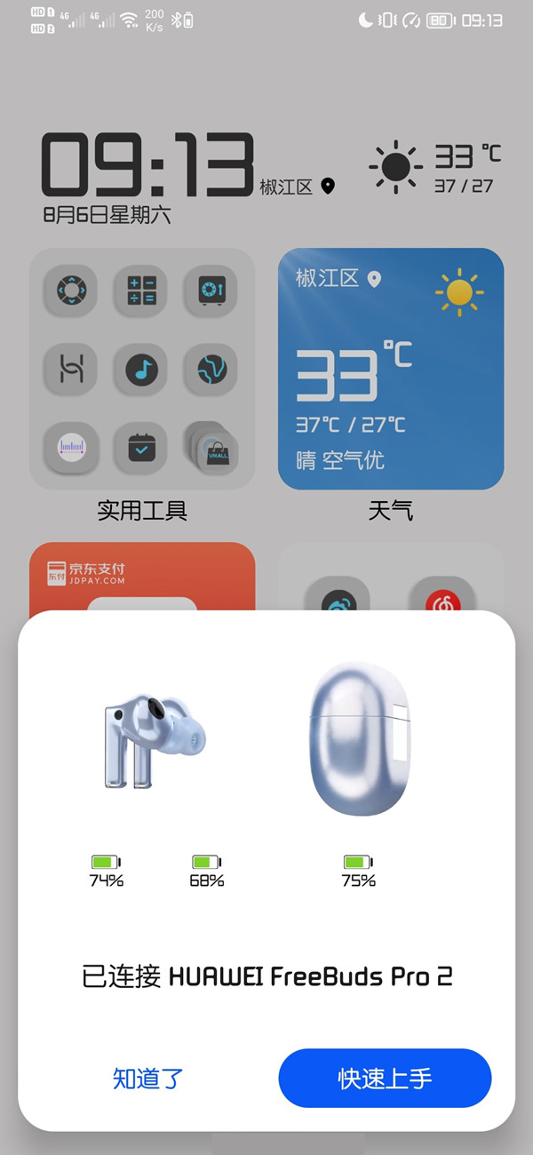 如果手机不支持弹窗配对,通过智慧生活APP上的耳机卡片上也可以查看耳机和电池盒电量。