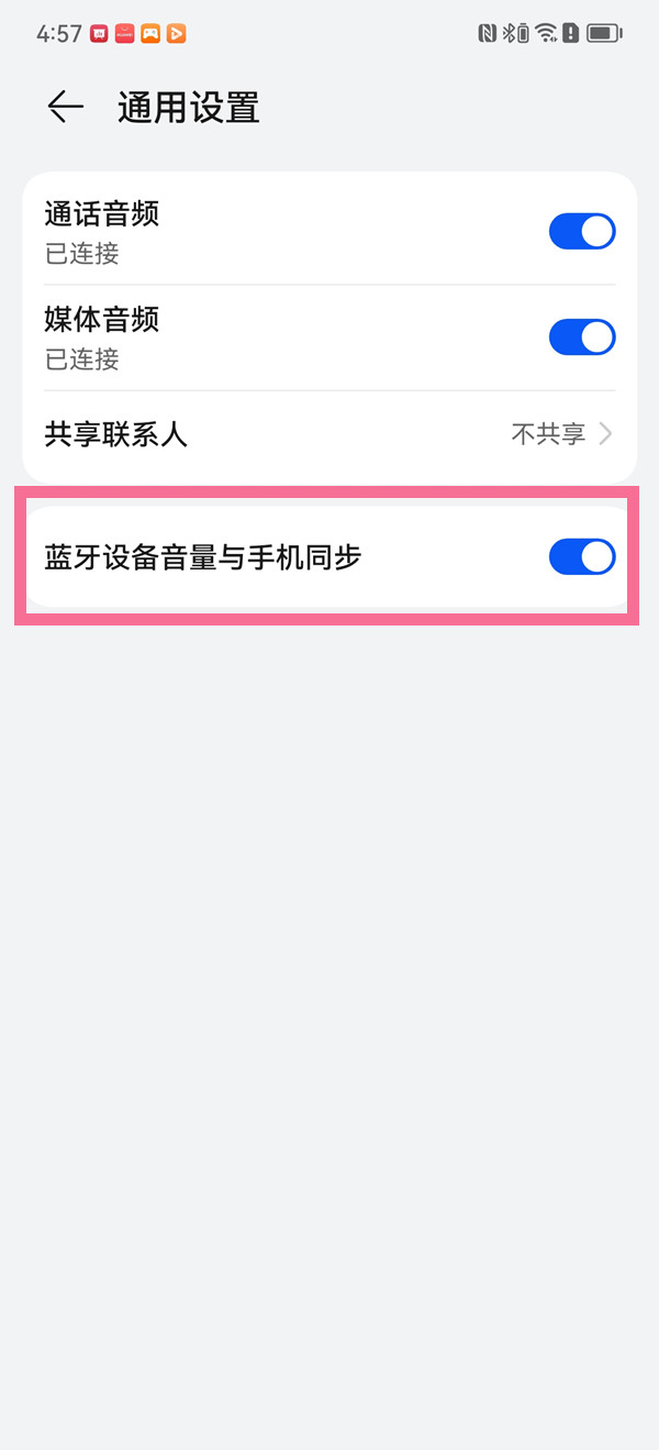 3、打开【蓝牙设备音量与手机同步】右侧的开关即可。