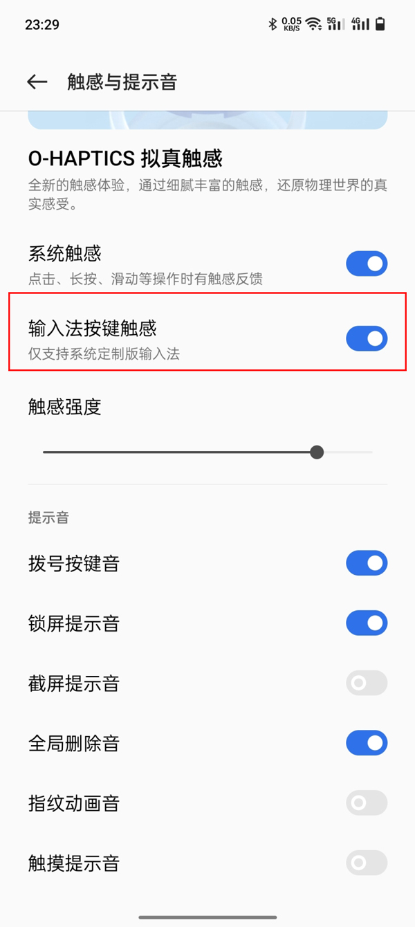 2、在触感与提示音中关闭【输入法按键振动】右侧的开关即可。