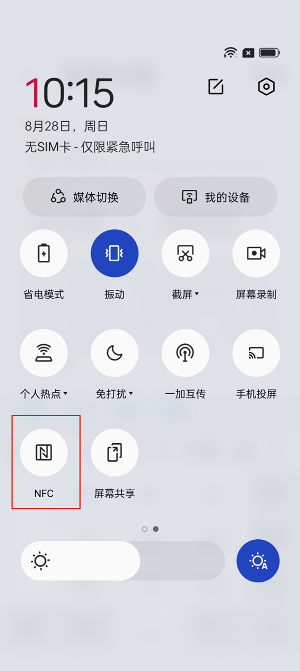 ️在控制中心开启方法:也可从屏幕顶部下拉呼出状态栏,点亮【NFC】图标。
