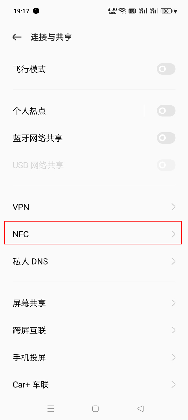 2、打开【NFC】右侧的开关即可。
