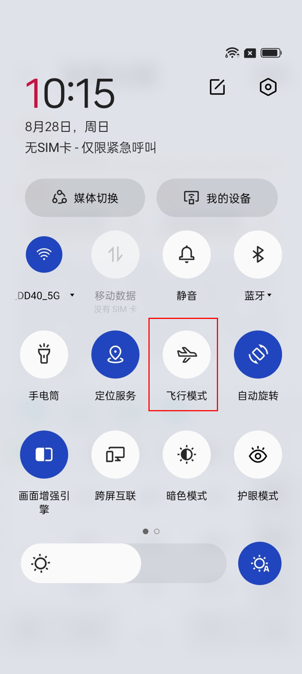 也可以从屏幕顶部往下拉,划出状态栏,点击飞行模式按钮即可。