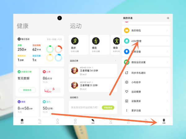 oppowatch3怎么开通esim1、打开欢太健康APP,在“设备”页面点击【eSIM管理】。