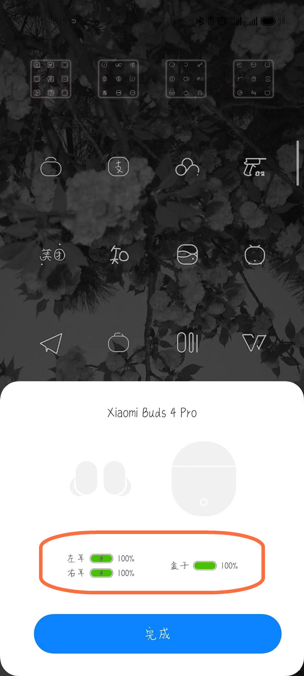 2、在手机屏幕底部会出现MIUI弹窗窗口,上面显示了双耳机和电池盒电量。