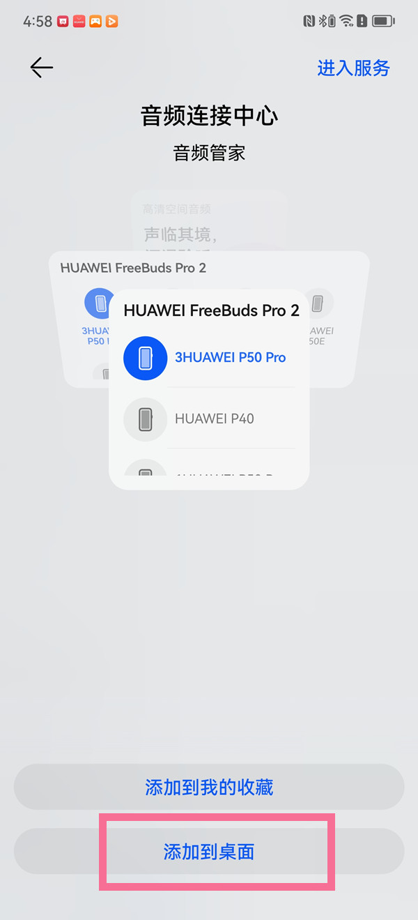 华为FreeBuds Pro 2支持“音频连接中心”功能,你可以看到耳机最近连接的10台设备。那华为FreeBuds Pro 2怎么添加音频服务卡片?