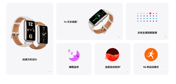 华为watchfitmini在续航方面,单次充电后,在典型使用场景下,最长可使用14天,在重度使用场景下,也能轻松续航10天,给你稳稳的安全感与陪伴。基于华为快充技术加持,出门前快充5分钟,也能使用2天;支持96种运动模式,续写你的热爱。涵盖跑步、骑行6、游泳、跳绳、瑜伽等 96 种运动模式,尽情挑战你的热爱。手环内的三个圆环,分别对应你的每日步数、活动小时数、中高强度活动时间,每天动一动,三环更加圆满,养成运动好习惯。